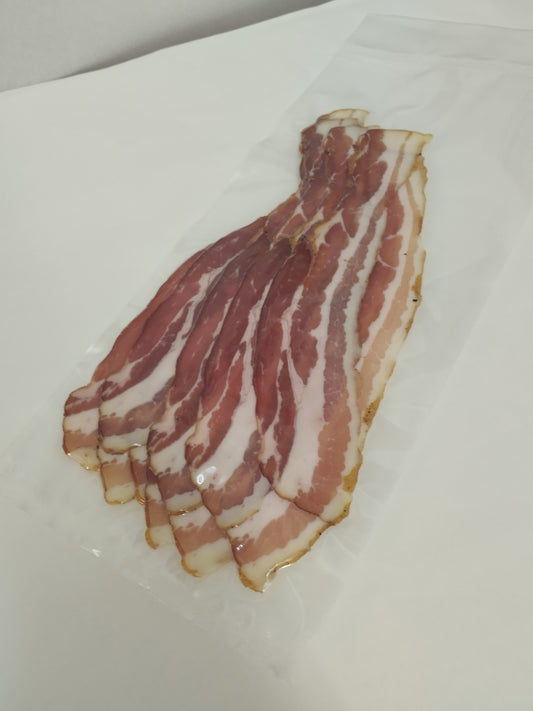 Gerauchter Schweinebauch, geschnitten